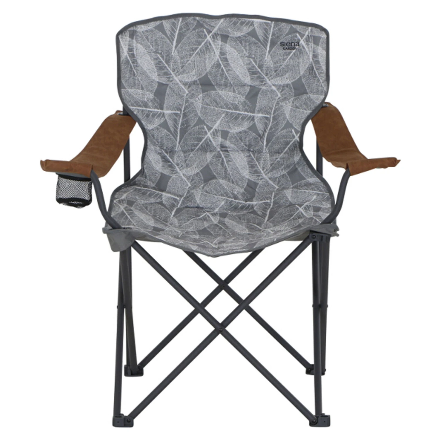 Der anthrazitfarbene Alu-Camping Faltsessel ‚Natura‘ ist aus pulverbeschichtetem Aluminium gefertigt und mit Flächen aus Polyester kombiniert. Die Armlehnen bestehen aus PU-Leder. Der Sessel hat die Maße 90 x 61 x 95,5 cm. Ein hoher Sitzkomfort wird durch nützliche Extras ergänzt. Hierzu gehören die handliche Tragetasche und der Flaschenhalter in der Armlehne.