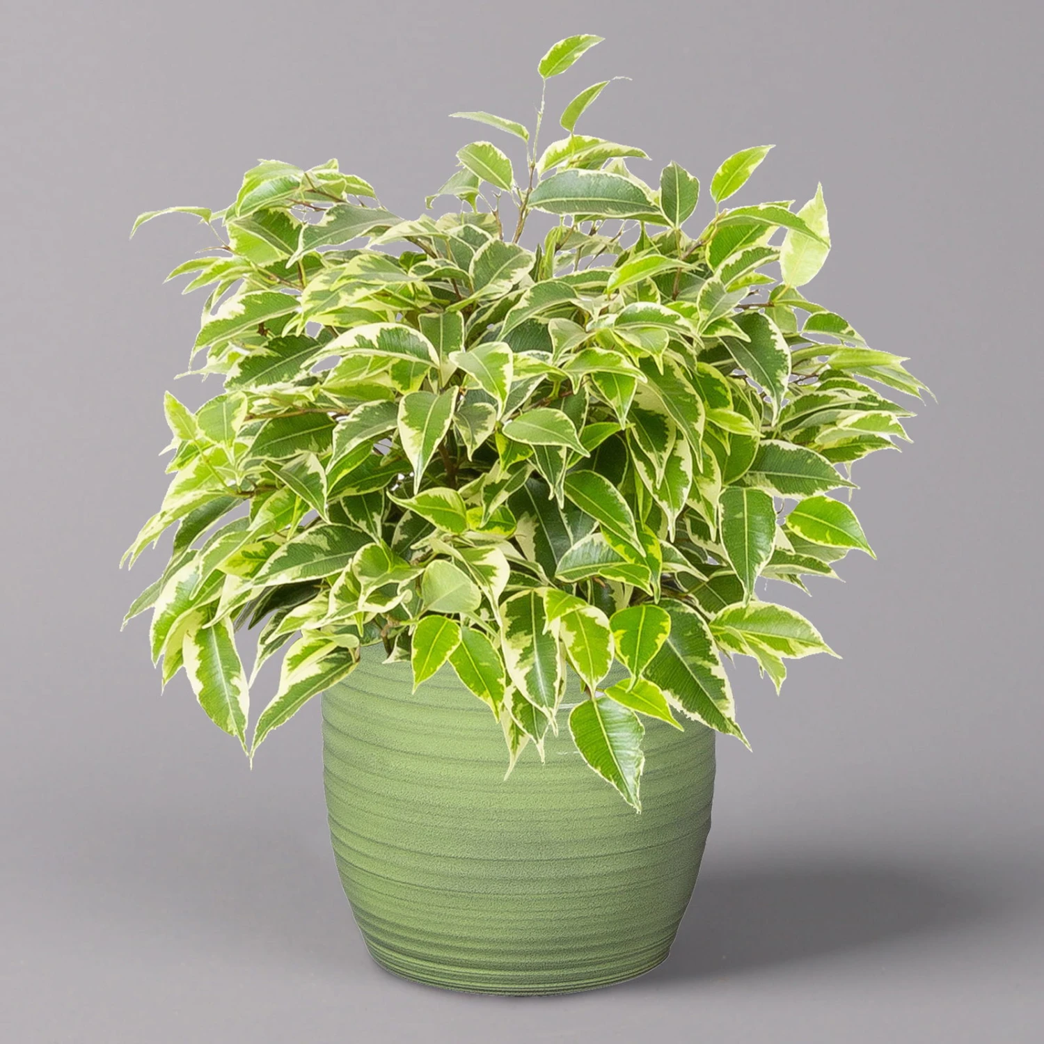 Birkenfeige ‚Kinky‘ In Keramiktopf Bergamo Grün, Topf-Ø 12 Cm, Höhe Ca. 26 Cm