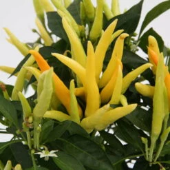 Die 5 – 6 cm langen Früchte des ‚Paprikaños‘ sind mild und süß und reifen von hellgelb nach rot ab. Geerntet werden kann ab August. Für eine späte Ernte müssen die Pflanzen rechtzeitig aus dem Freiland an einen warmen, geschützten Platz im Haus umziehen. Die Früchte des ‚Paprikaños‘ werden vor allem frisch, können aber auch getrocknet verwendet werden.