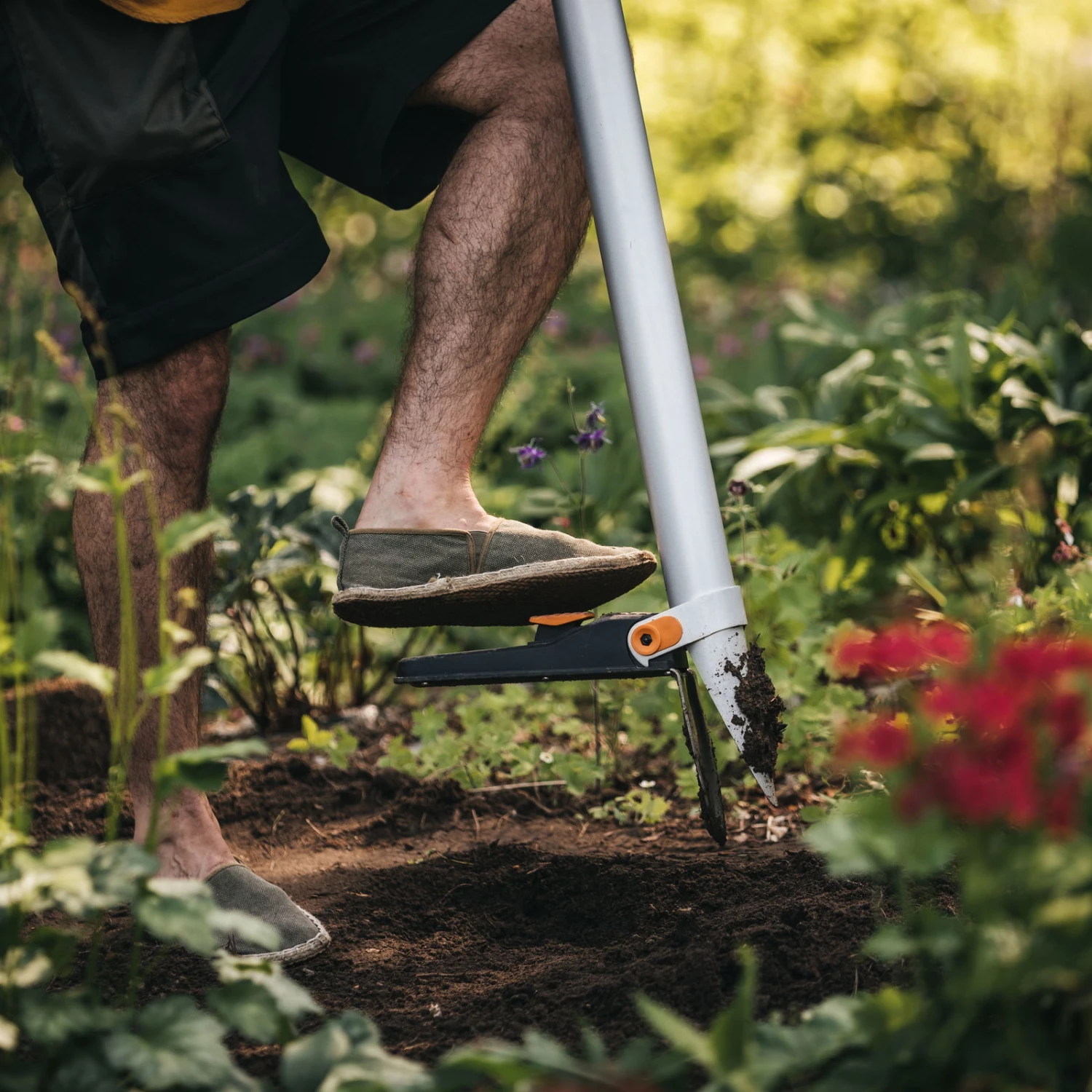 Mit dem Blumenzwiebel-Pflanzer Xact von Fiskars geht die Gartenarbeit sofort schneller von der Hand. Das Gartengerät gräbt Pflanzlöcher mit einer Tiefe von bis zu 15 Zentimetern. Dank eines Klingenverriegelungsmechanismus eignet sich der Blumenzwiebel-Pflanzer für Zwiebeln mit einem Durchmesser bis zu 5 Zentimetern. Für mehr Arbeitskomfort sorgen ein langer, robuster Stiel und eine praktische Trittfläche.