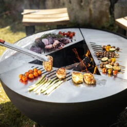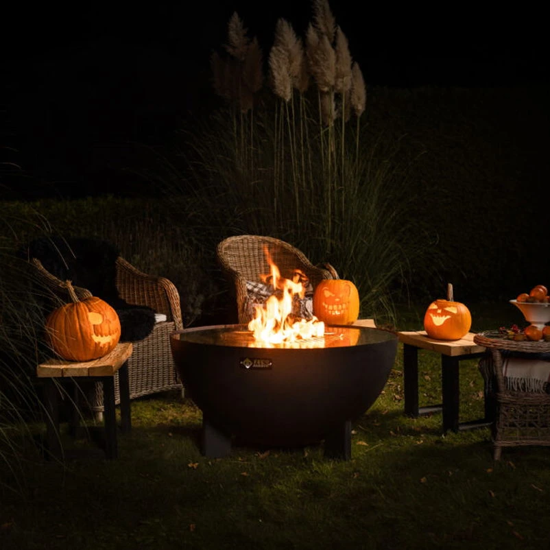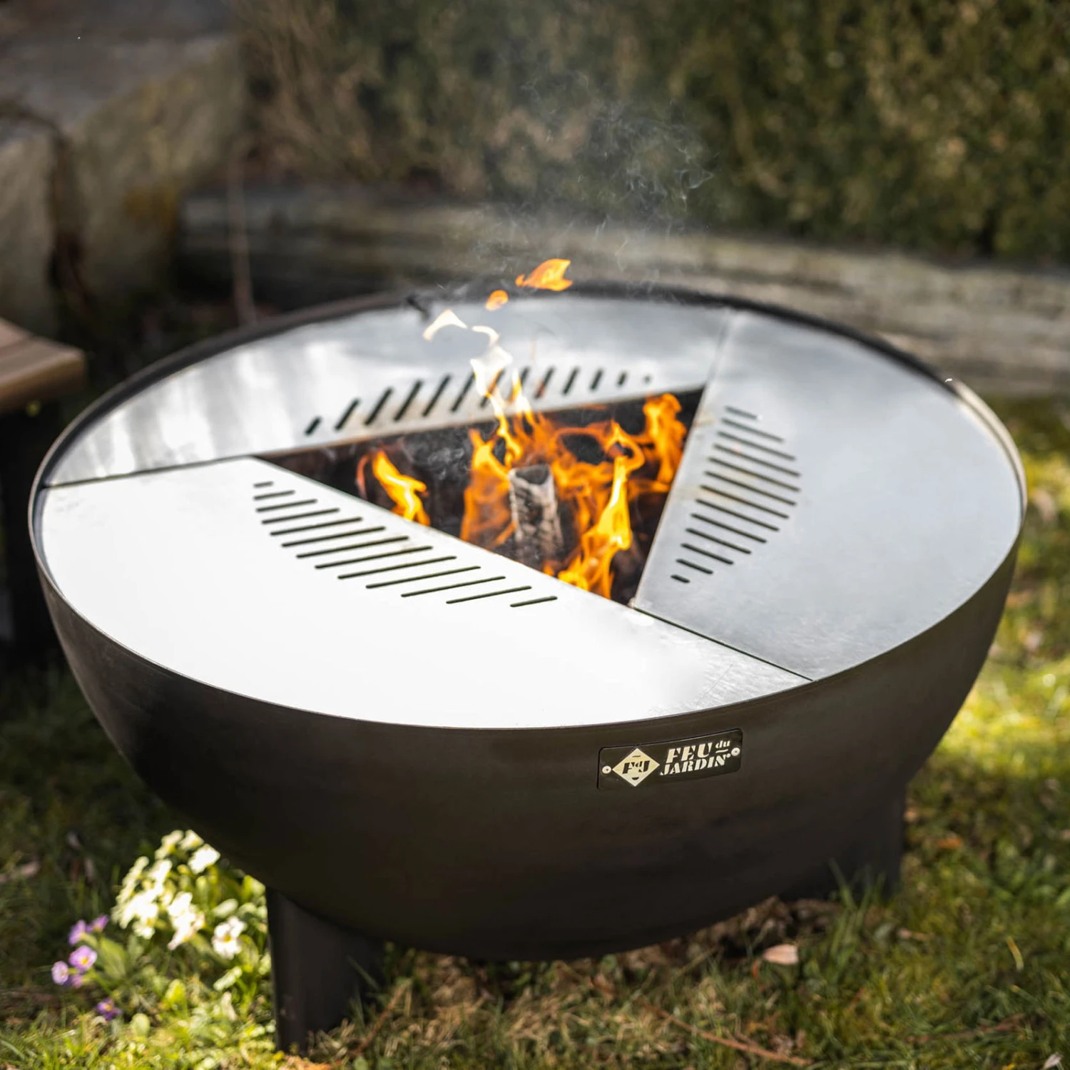 Verbringen Sie gemütliche Abende an wärmendem Lagerfeuer und genießen Sie den Tanz der Feuerzungen. Die schwarze Feuerstelle TRIA von Feu du Jardin setzt dank der eleganten Designlösung dekorative Akzente im Garten oder auf Ihrer Terrasse und lässt sich auf Wunsch als Grill- oder Kochstelle einsetzen.