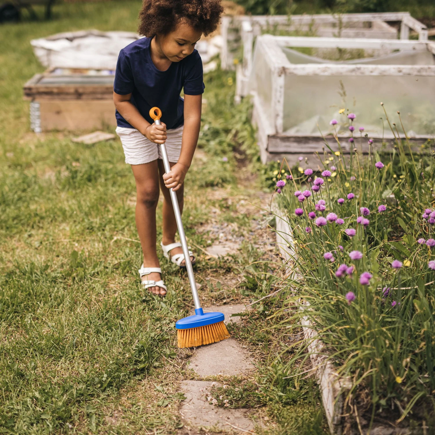 Mit dem 19,8 x 80 x 6,8 cm großen MyFirst Fiskars Besen reinigen Sie Garten- und Gehwege sowie Treppen und Terrassen. Die weichen Borsten und die praktische Arbeitsbreite von 18 cm erleichtern die Arbeit. Dank des stabilen Aluminium-Stiels und des Griff-Knopfs ist die Handhabung sicher und komfortabel.