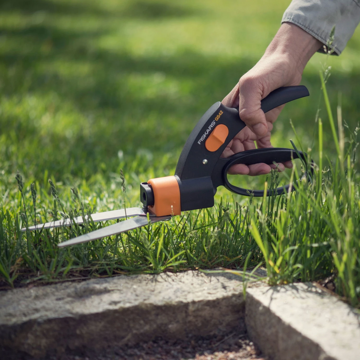 Die Rasenkantenschere eignet sich optimal zum einfachen und präzisem Schneiden von Gras. Das ergonomische Design und das geringe Gewicht ermöglichen eine angenehme Gartenarbeit. Durch den drehbaren Scherenkopf gelangen Sie problemlos in jede Ecke.