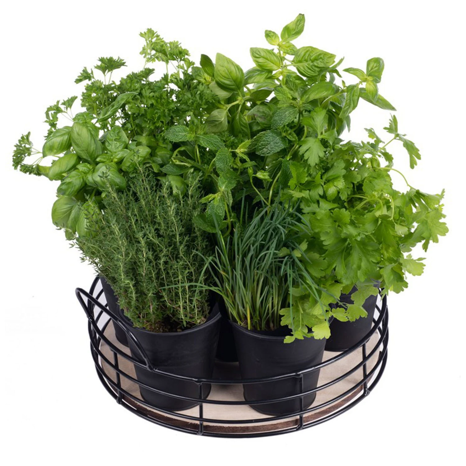 Das Küchenkräuter-Tablett Home Collection im eleganten Design wertet Ihre Kücheneinrichtung auf und versorgt Sie ganzjährig mit frischen Gartenkräutern. Auf dem Eisen-Tablett mit Holzboden lassen sich in sechs Eimern aus dem mitgelieferten Saatgut ganz unkompliziert Kräuter ziehen. Nur mit Substrat befüllen, regelmäßig wässern und genießen.