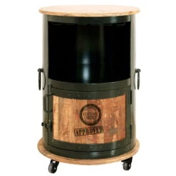 Die IRON Bar im angesagten Industrial Style steht auf stabilen Rollen und macht Ihre Getränke mobil. Diese rollbare Bar präsentiert die edlen Tropfen auf eine vorteilhafte Art und bietet Platz für Flaschen sowie für Gläser und Zubehör. Das Einrichtungsaccessoire ist aus hochwertigem Mangoholz in Kombination mit Eisen gefertigt und detailreich verarbeitet.