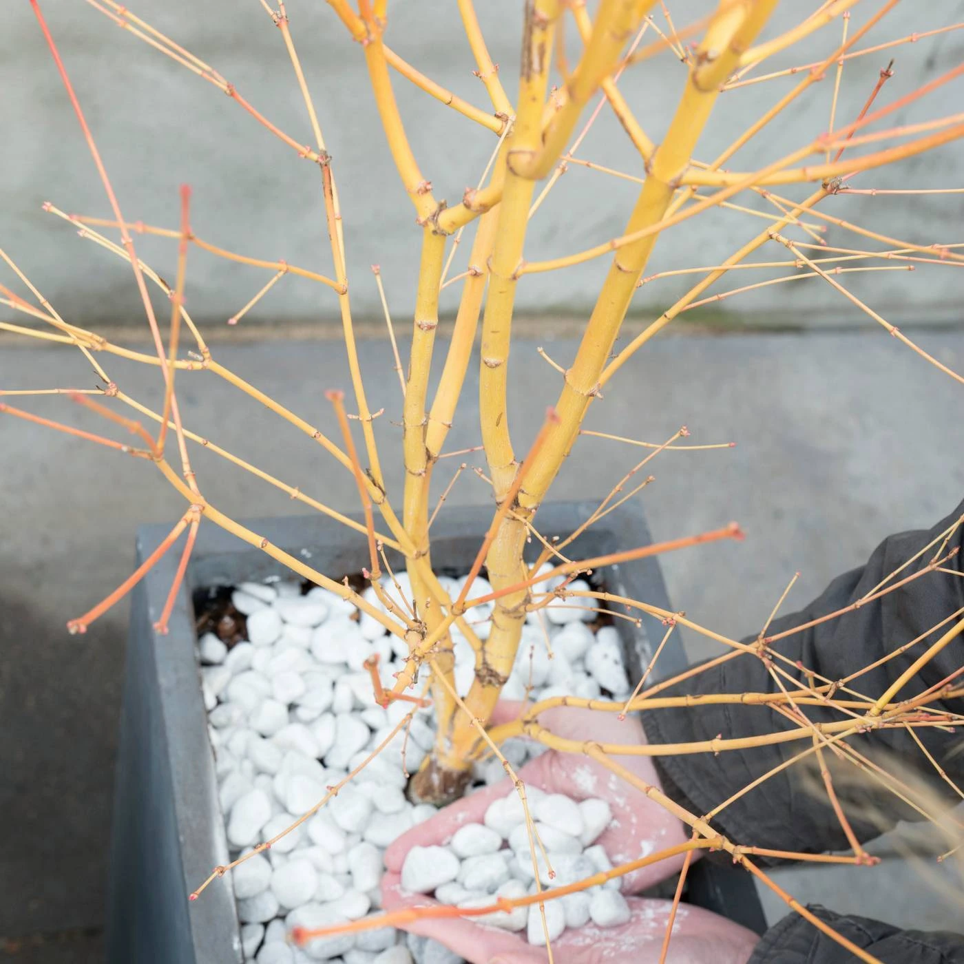 Tipp: der frische Austrieb, der im Gewächshaus überwinterten Japanischen Ahorn, ist sehr empfindlich. Daher im Frühjahr die Pflanzen mit frischem Austrieb vor Nachtfrösten schützen und an einem schattigen Standort im Garten an die Außentemperaturen und die direkte Sonneneinstrahlung gewöhnen.