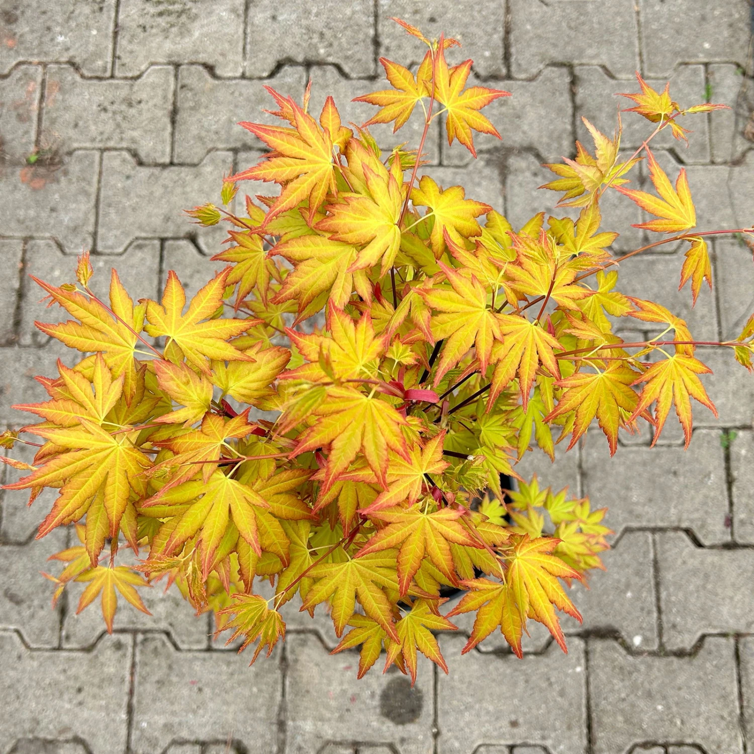 Der Fächerahorn ‚Orange Dream‘ besticht mit seinem traumhaft schönen gelborangen / rötlichen Austrieb. Die über die Sommermonate grünlichen dekorativen fächerförmigen Blätter färben sich im Herbst prächtig gelb. Der 1 – 2 m hohe Strauch ist auch Kübelgeeignet. Somit schmückt dieser Japanische Ahorn nicht nur den Garten sondern auch Balkon und Terrasse. Im Winter muss der Topf geschützt werden, sonst ist die Pflanze winterhart. Optimale Standortbedingungen findet der Acer in halbschattigen Lagen.