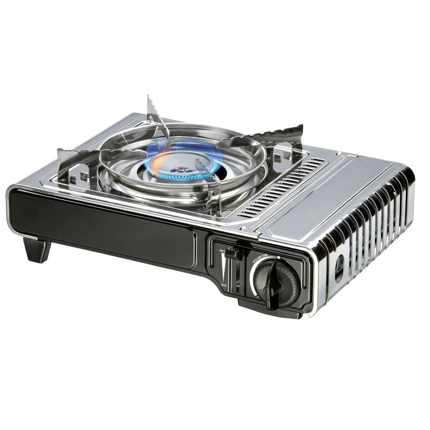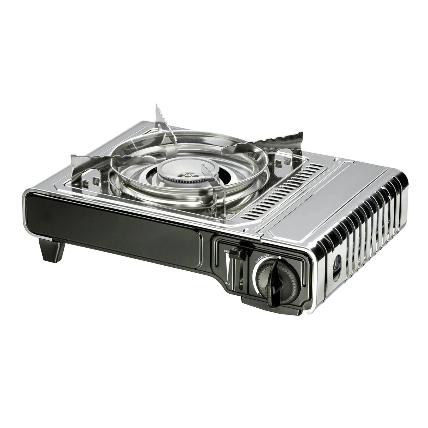 Der Kartuschenkocher ‚Nelson‘ von Enders ist Ihr leistungsstarker Begleiter beim Camping oder eine vielseitige Outdoor-Kochstelle im Schrebergarten. Der 2,2 Kilowatt starke Brenner ist stufenlos einstellbar, der Topfrost und das Gehäuse bestehen aus strapazierfähigem Edelstahl und um die Sicherheit kümmern sich der Überhitzungsschutz und die Überdruck-Sicherheitsabschaltung. Für bequemen Transport sorgt ein mitgelieferter Koffer.