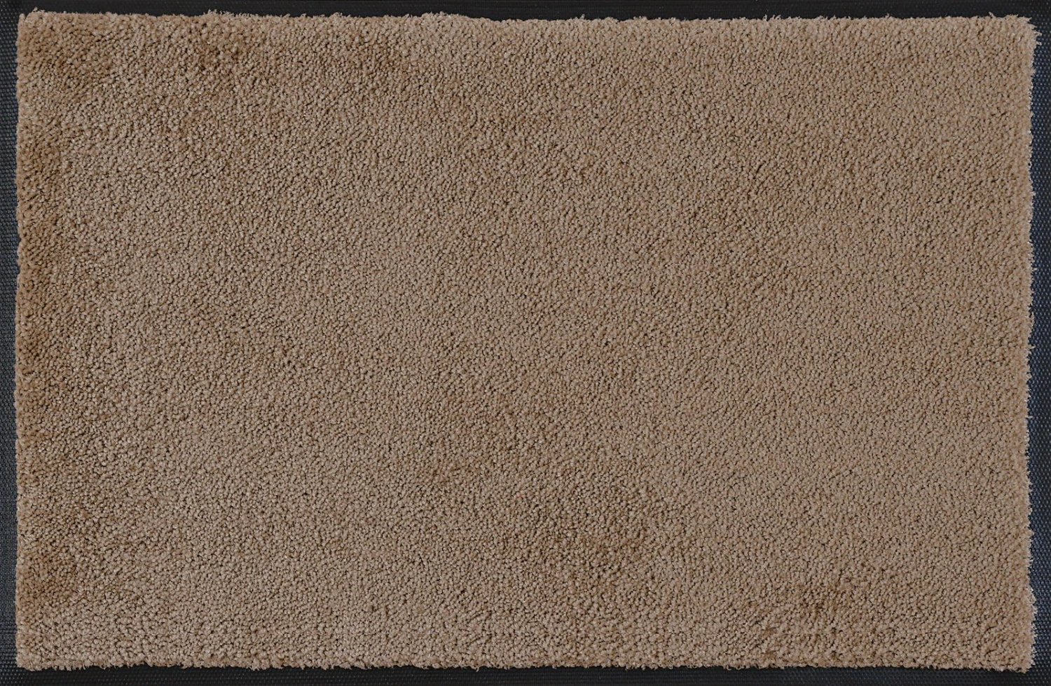 Alle Fußmatten von wash+dry Original werden ausnahmslos in Europa produziert. Sie bestehen aus einem flachen und besonders dichten Flor hochwertiger und strapazierfähiger Polyamid-Fasern sowie einem rutschhemmenden Rücken aus PVC-freiem Nitrilgummi. Zudem sind die Matten überaus pflegeleicht und trittschalldämmend. Kleinere und größere Verschmutzungen werden bei 60 °C in der Waschmaschine entfernt, anschließend wird die Matte im Wäschetrockner getrocknet – einfacher kann die Pflege von Fußmatten nicht sein. Auch nach etlichen Waschgängen begeistert die taupefarbene Fußmatte hervorragender Qualität und Farbbrillanz.