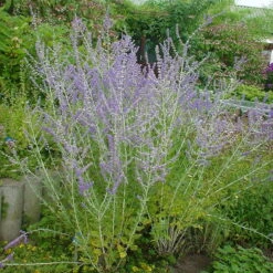 Die Kompakte Blauraute Perovskia atriplicifolia ‚Little Spire(S)‘ ist ein Halbstrauch, der Sie zwischen August und September mit seinen violettblauen, filigranen Rispenblüten begeistert. Die Blauraute lockt mit ihrem angenehmen Duft zahlreiche nützliche Bienen und Insekten in Ihren Garten und fühlt sich in sonnigen, geschützten Lagen wohl. Die Perovskia ‚Little Spire(S)‘ gehört zu den schönsten Spätsommerblühern in blau. Besonders gut wirkt sie in Grupenpflanzungen zusammen mit Stauden und Gräsern. Wir empfehlen einen jährlichen Rückschnitt im Frühjahr auf rund zehn Zentimeter. Verträgt keine Staunässe.