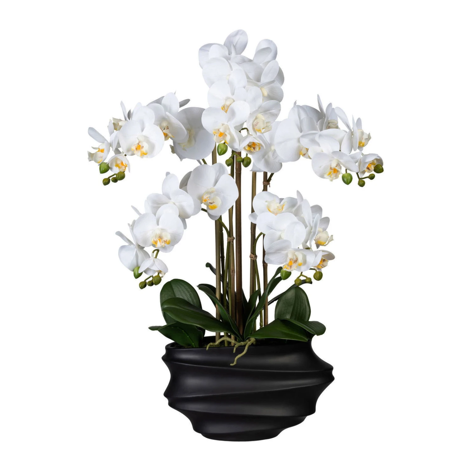Künstliche Orchidee, Phalaenopsis, 5 Rispen, Weiß, Ca. 75 Cm, 30 X 17 X 12 Cm Kunststoffvase In Schwarz