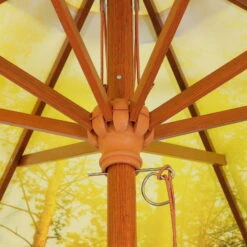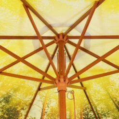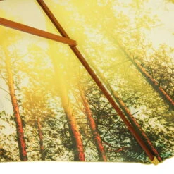 Der runde Sonnenschirm MALAGA begeistert durch sein tolles Waldmotiv, das perfekt mit der Holzoptik des Gestells harmoniert. Die Position des Marktschirms kann problemlos und präzise an den Sonnenstand angepasst werden. Von Vorteil ist außerdem die wasserabweisend imprägnierte, verrottungsfeste Bespannung.