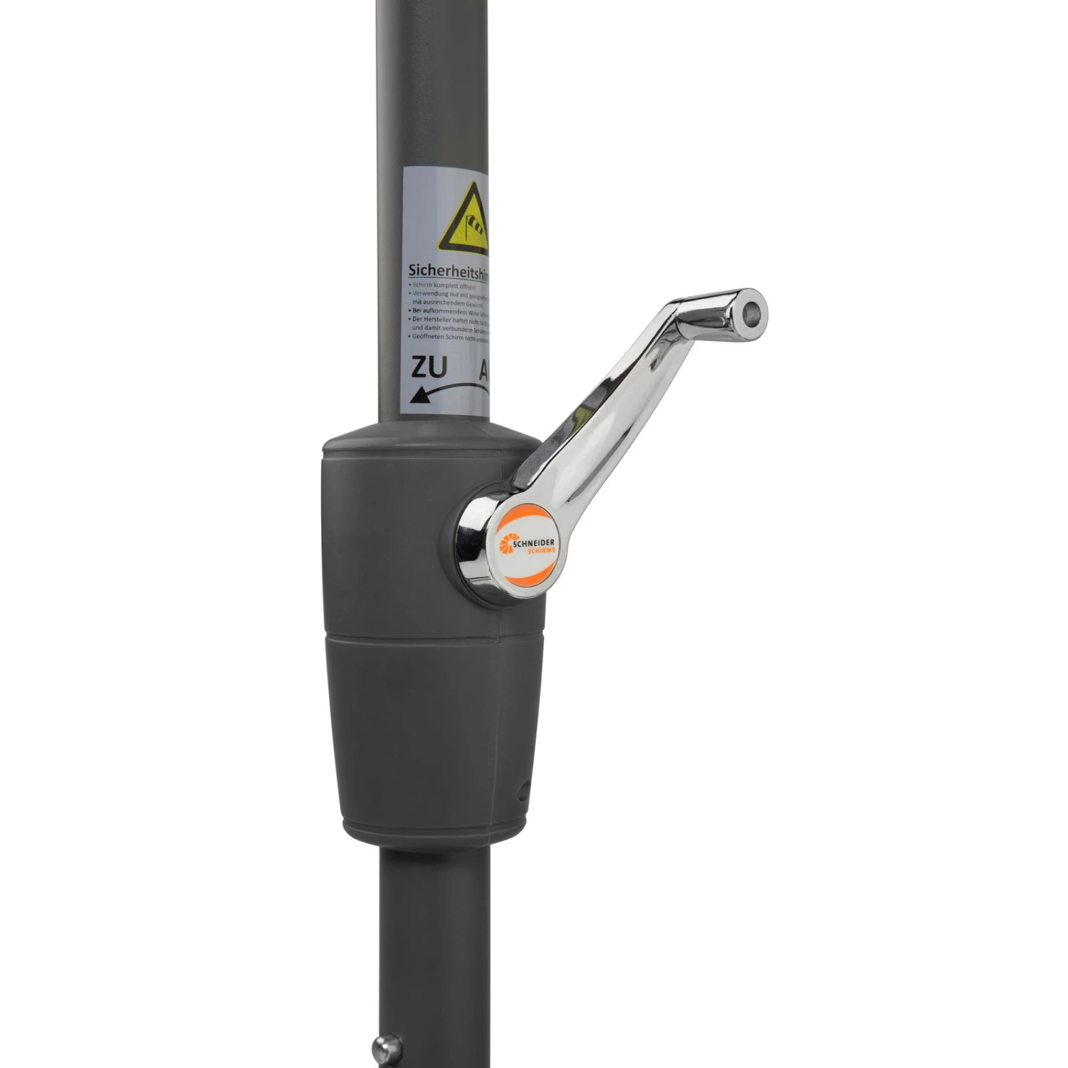 Nur ein paar Handgriffe – und Sie genießen wohligen Schatten an einem glühend heißen Sommertag. Der Sonnenschirm TUNIS von Schneider lässt sich mühelos aufspannen und an den aktuellen Sonnenstand anpassen. Sie brauchen nur noch einen passenden, rund 50 Kilogramm schweren Sockel. Ein weiterer Pluspunkt ist die wasserabweisende, imprägnierte und pflegeleichte Bespannung aus Polyester.