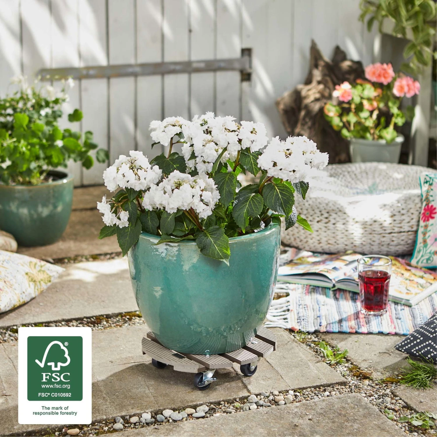Schwere Pflanzenkübel bleiben dank des Multi Rollers mobil und Sie formen Ihr Begrünungskonzept ganz nach Ihrem Wunsch. Die Tragfläche dieses hochbelastbaren Pflanzenrollers besteht aus innovativem Verbundstoff WPC in naturnaher Holzoptik. Das Material ist nicht nur wasserabweisend und UV-beständig, sondern auch pflegeleicht und dauerhaft formstabil.