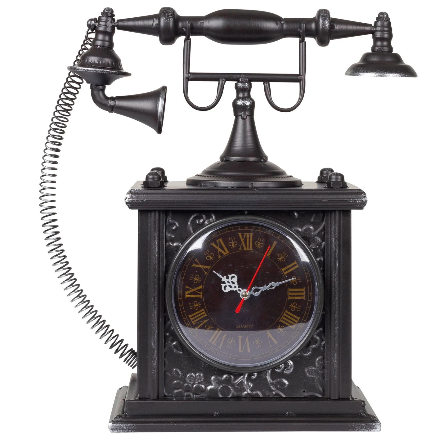 Telefon-Uhr, Metall, Schwarz, Römische Zahlen