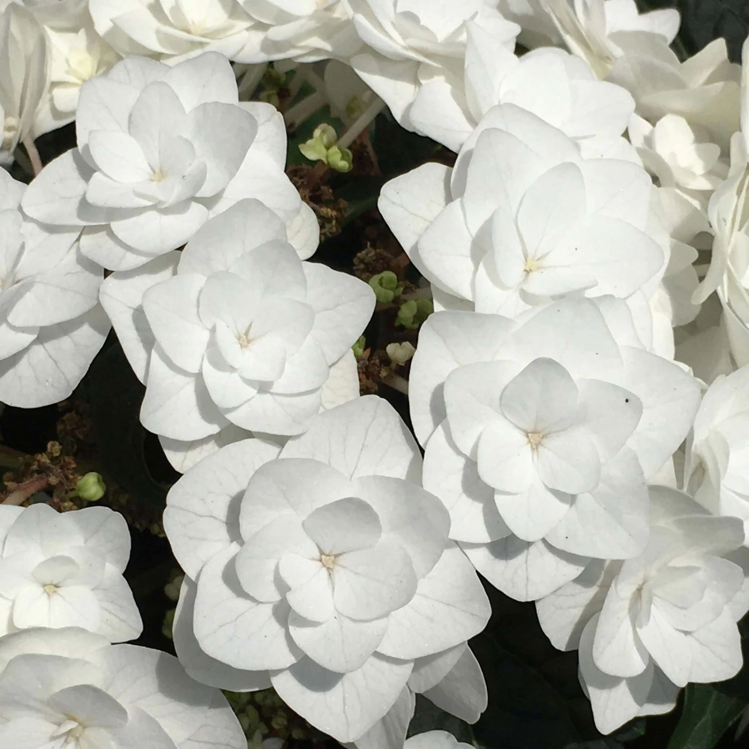 Die Gartenhortensie Hydrangea macrophylla ‚Wedding Gown’® scheint dank ihrer gefüllten, schneeweißen Blüten tatsächlich ein festliches Hochzeitskleid zu tragen. Die formschönen Dolden begeistern Sie von Juni bis in den Herbst hinein mit üppiger Blüte. Die Hortensie ‚Wedding Gown’® macht nicht nur in Ihrem Garten, sondern auch als Kübelpflanze auf der Terrasse oder auf dem Balkon, eine sehr gute Figur. Die Hydrangea-Züchtung fühlt sich in halbschattigen Lagen am wohlsten und benötigt lockere, humose Böden, idealerweise Rhododendronerde. Die Pflanze regelmäßig gießen, dabei aber Staunässe vermeiden.