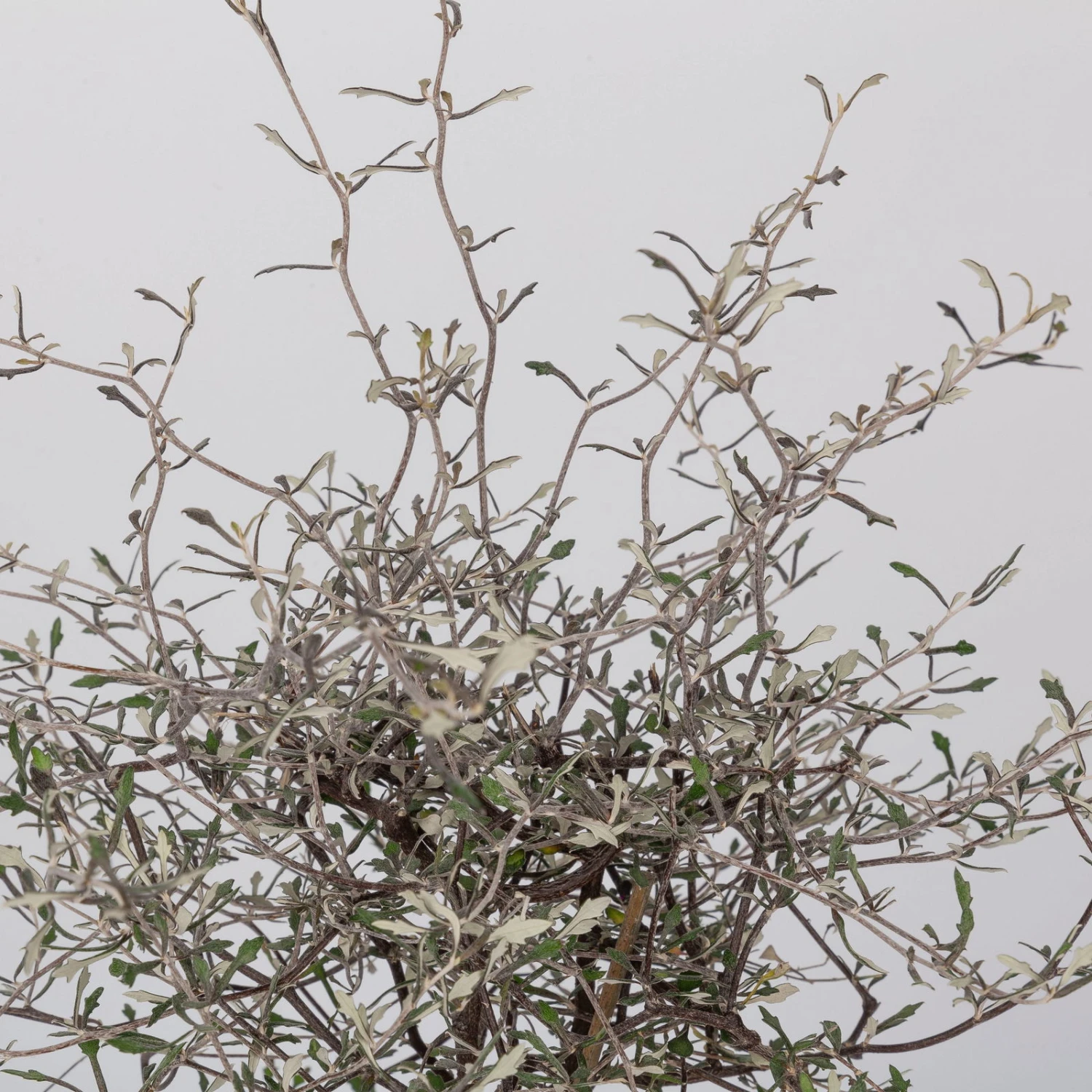 Der Zickzackstrauch (Corokia cotoneaster) mit seinem kleinen oval bis eiförmigen Blättern begeistert mit seinem filigranen Wuchs. Die immergrünen bzw. silbernen Blätter bleiben über das gesamte Jahr an der Pflanze erhalten. Der Wuchs dieser Zimmer- oder Kübelpflanze ist aufrecht pyramidal, die Äste und Triebe haben einen bizarren zickzackförmigen Wuchs. Die Pflanze erreicht eine Höhe von bis zu 2 Metern.