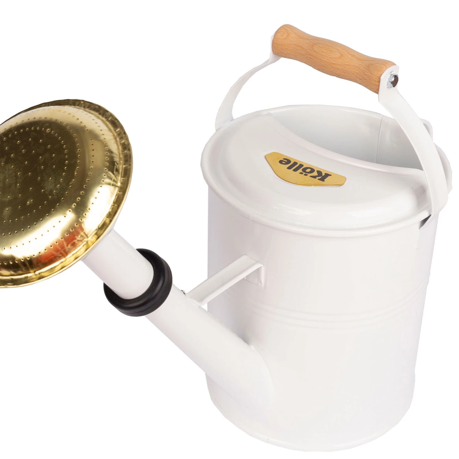 Zinkgießkanne Mit Holzgriff & Messingbrause, Weiß